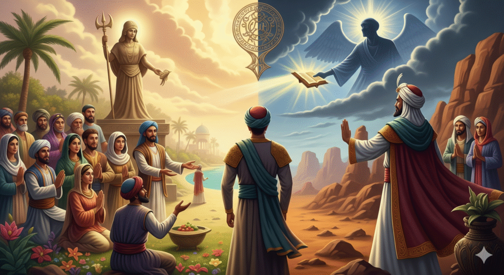“हमारे देवताओं को बुरा मत कहो। आओ समझौता कर लेते हैं — एक साल हम तुम्हारे अल्लाह की इबादत करेंगे और एक साल तुम हमारे देवताओं की पूजा कर लेना।”