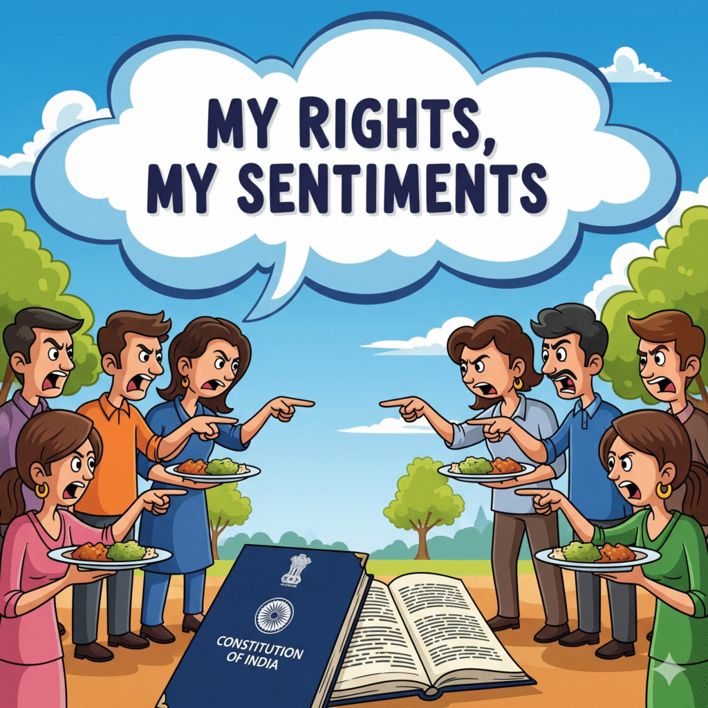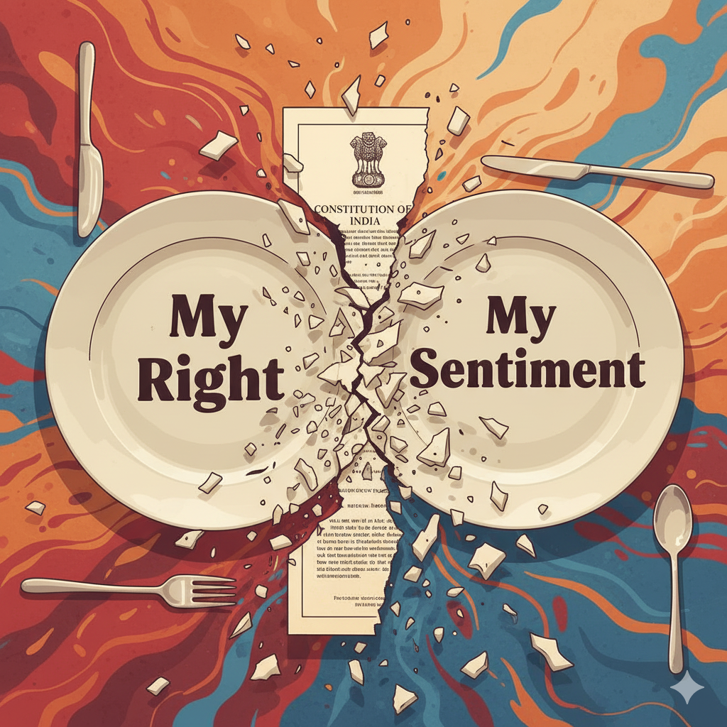 But the real problem arises when one person’s right begins to wound another’s faith and sentiments.