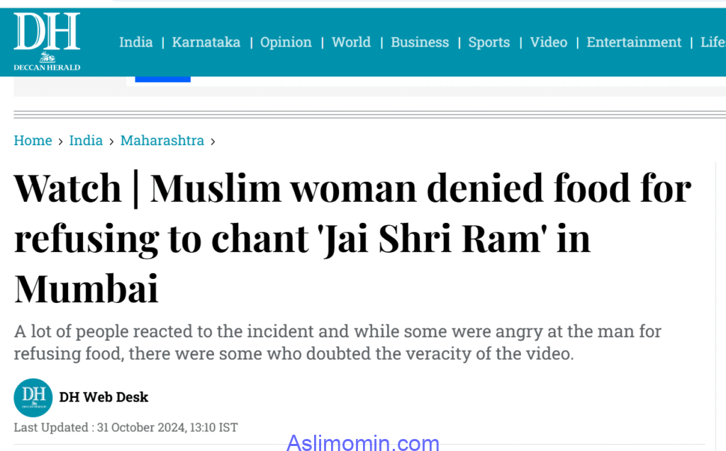 Recently in Mumbai, a woman was denied food simply because she did not chant “Jai Shri Ram.”