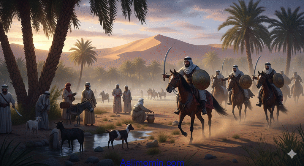 It was dawn. The Banu Mustaliq were watering their camels. Suddenly, swords flashed—and the attack began.